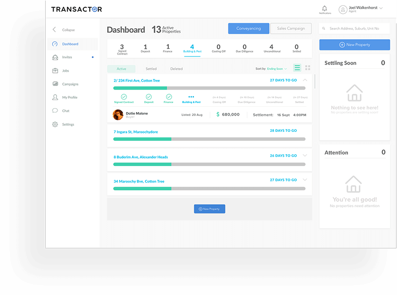 - Track progress of conveyancing